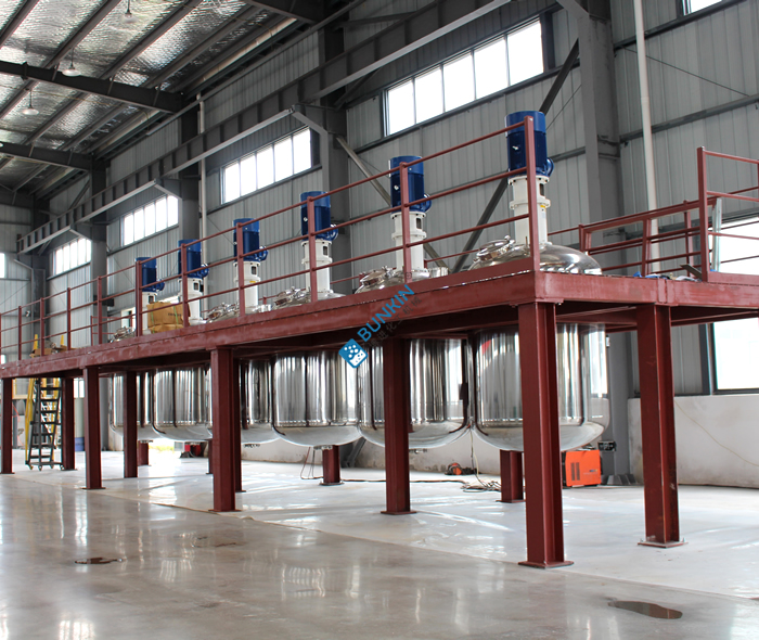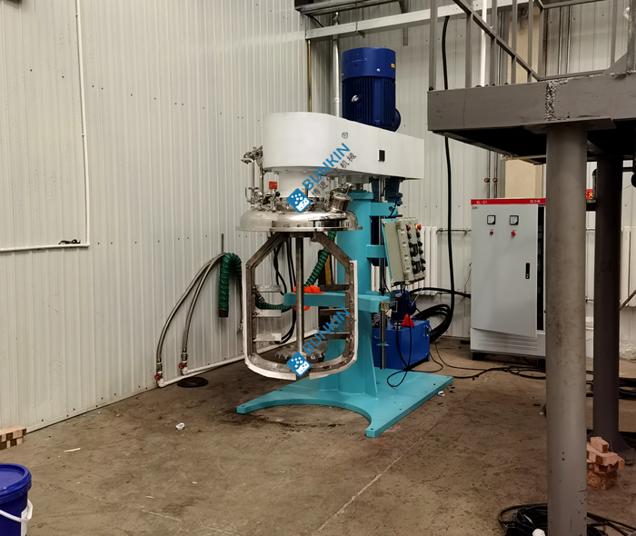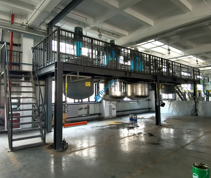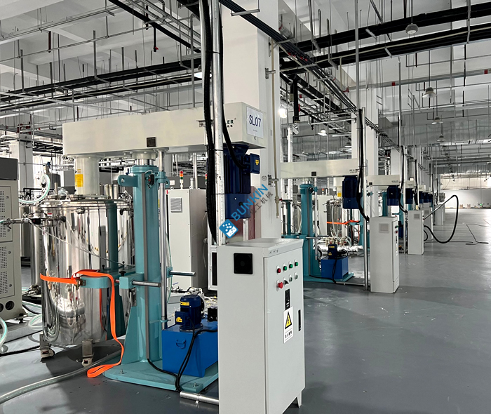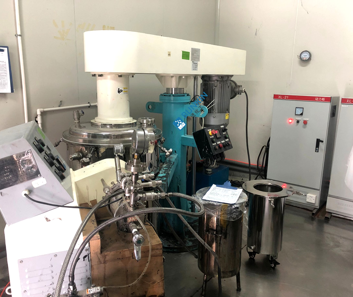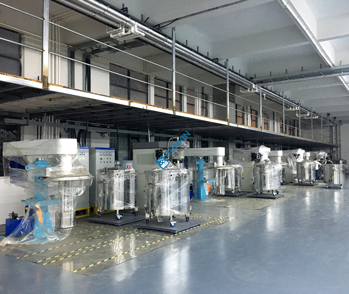 浙江XX電子材料有限公司購買液壓升降籃式研磨機、電動升降分散攪拌機等使用現(xiàn)場。