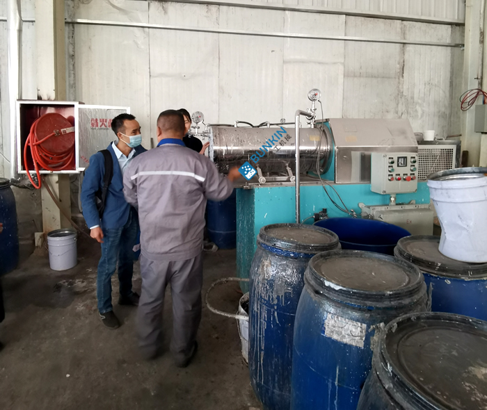 山東XXXX科技股份有限公司購買臥式砂磨機使用現(xiàn)場