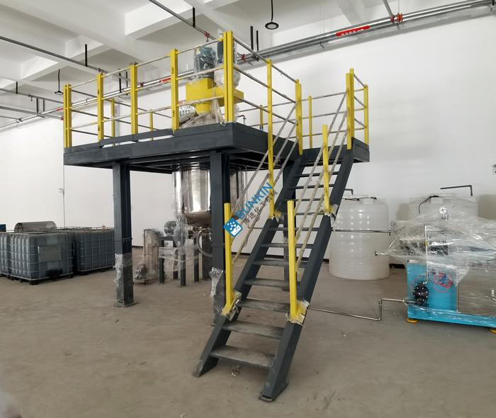江蘇XX新材料科技有限公司購買一批液壓升降籃式研磨機使用現(xiàn)場