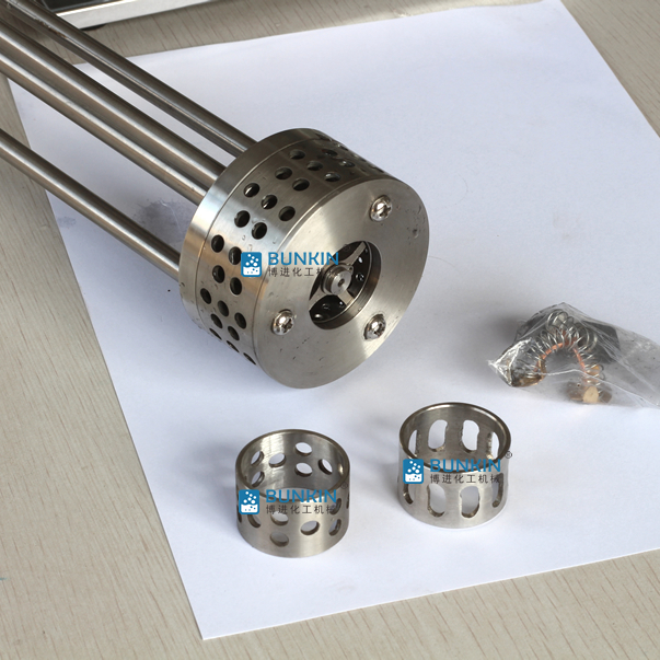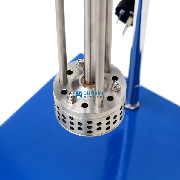 實驗室小型乳化機強勁的馬達進行高速旋轉(zhuǎn)使轉(zhuǎn)、定子之間形成真空,物料從轉(zhuǎn)、定子上部和底部吸入。強大動能使轉(zhuǎn)子產(chǎn)生極高的線速度,使物料在轉(zhuǎn)、定子間隙之間經(jīng)過強烈的撞擊、破碎、離心擠、液層摩擦、強力剪切之后飛射出去,在多種不同方向力的作用下,產(chǎn)生強大紊流。物料在適量乳化劑和成熟工藝下經(jīng)過一定時間反復(fù)循環(huán)解聚、分散、均質(zhì)、細化、剪切產(chǎn)生穩(wěn)定乳狀液。