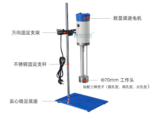 設(shè)備轉(zhuǎn)速可達11000rpm,能夠快速的將粉料/液料均勻分散到液料里面;轉(zhuǎn)定子加工精度高、間隙小,物料由于受到極高的剪切力,分散均勻,形成很好的懸浮效果。