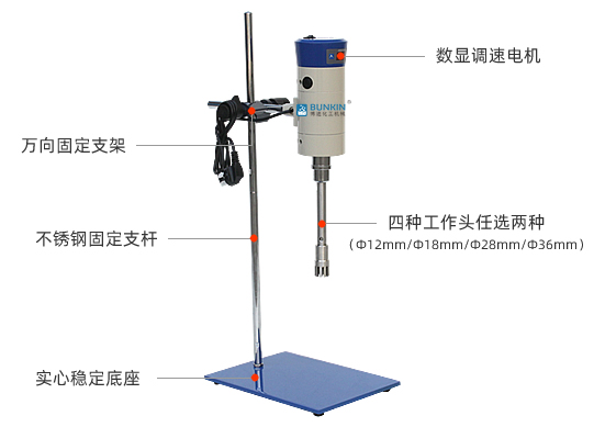 設(shè)備帶有鎖緊及升降手柄,能夠快速升降和固定;均質(zhì)頭快拆式設(shè)計(jì),更換方便,清洗容易。