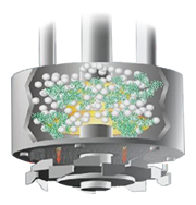 設(shè)備轉(zhuǎn)速可達(dá)3000rpm,強(qiáng)大的動能驅(qū)動氧化鋯撥桿使腔體內(nèi)的研磨介質(zhì)產(chǎn)生不規(guī)則運(yùn)動,相互之間高速碰撞、摩擦,使物料粒徑快速變??;研磨細(xì)度好。