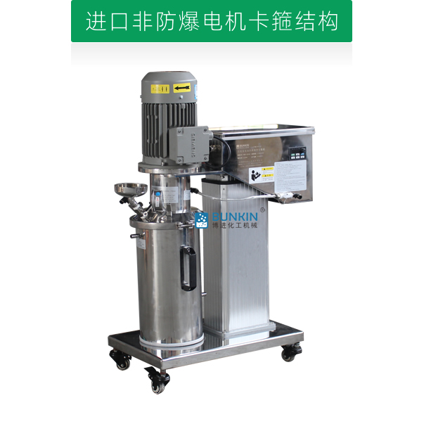 設(shè)備帶有電動(dòng)升降,噪音低能夠快速升降和固定密封桶;分散盤(pán)采用內(nèi)六角螺栓與主軸固定,能夠方便快速拆卸更換,清洗容易;帶有鎖扣密封條裝置,可以快速將密封桶固定。