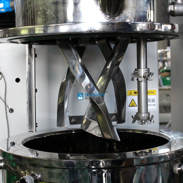 雙行星真空攪拌機(jī)是一種高性能、高效率、易清洗維護(hù)的新型攪拌設(shè)備。雙組攪拌器運(yùn)行時(shí)自轉(zhuǎn)同時(shí)繞著軸心進(jìn)行公轉(zhuǎn),攪拌器形式根據(jù)物料粘度和工藝特性選配,常見的包括漿葉式、麻花式、爪式、框式等,具備良好的混合、反應(yīng)、捏合、溶解的作用。