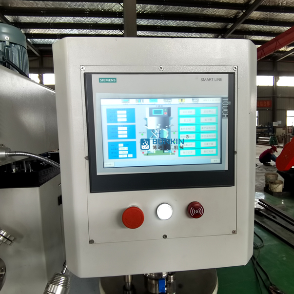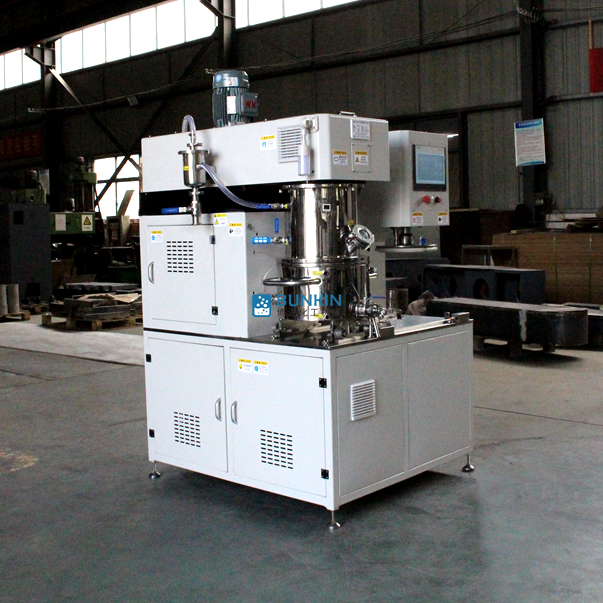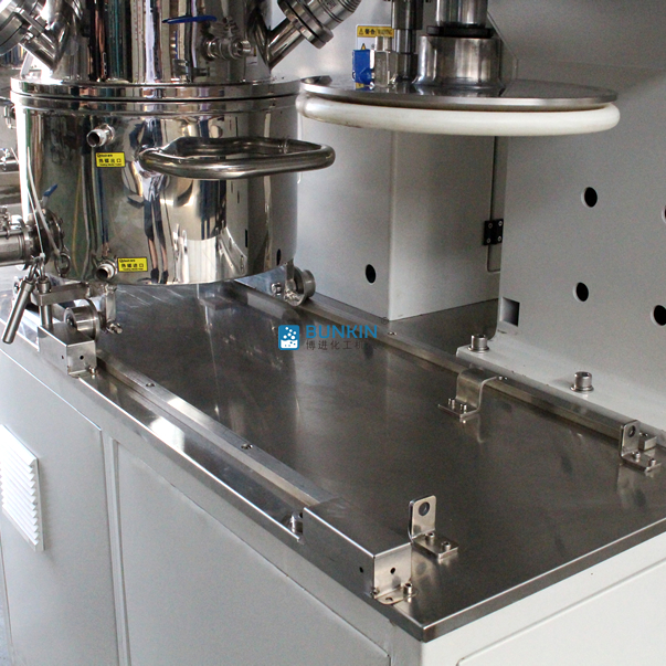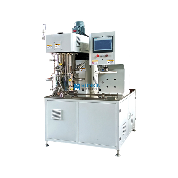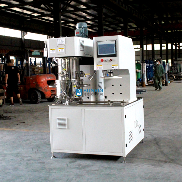5、缸內(nèi)特別增加一個(gè)或兩個(gè)高速分散器,在公轉(zhuǎn)的同時(shí)高速自轉(zhuǎn),使各種物料受到強(qiáng)烈的剪切與分散混合,效果是普通混合機(jī)的幾倍。同時(shí)也可更改為高剪切乳化機(jī)和研磨機(jī)等特種設(shè)備。