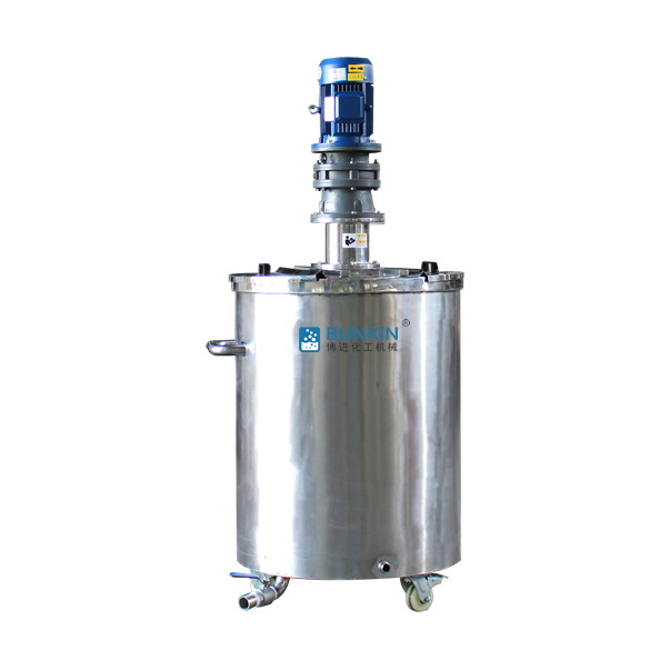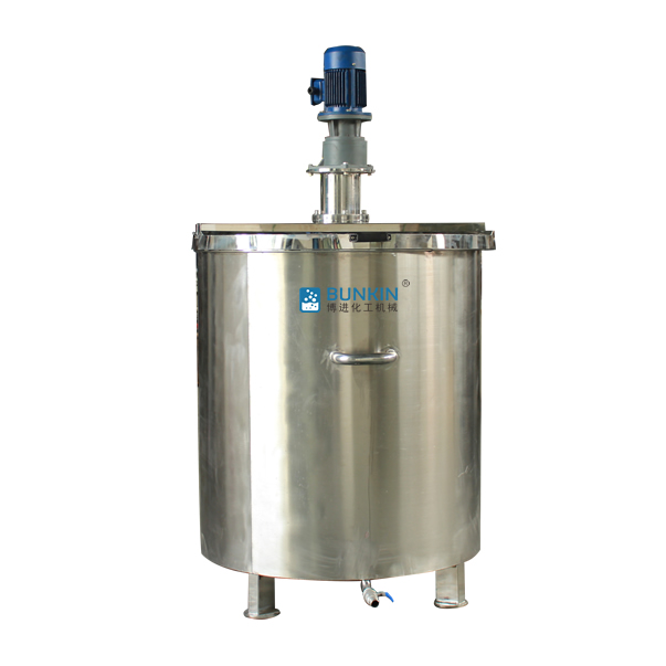 3、不銹鋼攪拌罐蓋上部配置有傳動裝置(電機(jī)或減速器),由傳動軸驅(qū)動攪拌罐內(nèi)的攪拌器。