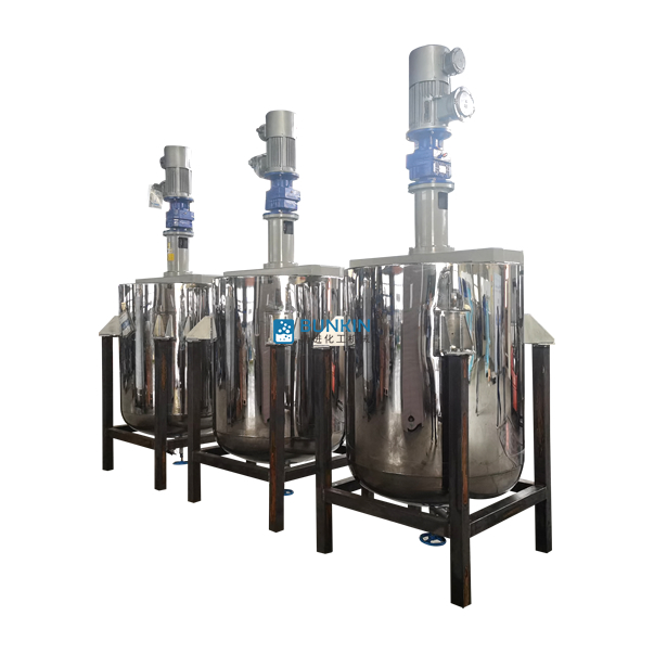 攪拌釜可根據(jù)需要配置1-2個高速分散機(jī)、乳化機(jī),分散機(jī)、乳化設(shè)備轉(zhuǎn)速可達(dá)2930rpm(常規(guī)1450rpm),線速度20m/s以上,能夠快速的將粉料均勻分散到液料里面;物料由于受到極高的剪切力,分散均勻,形成很好的懸浮效果。