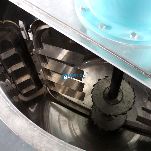 在攪拌器上裝有刮刀,緊貼釜壁刮拭,釜壁經(jīng)自動拋光機拋光,確?;顒庸蔚对谛D(zhuǎn)時把釜壁的物料完全刮掉,使釜壁無滯留料,提高混合效果。