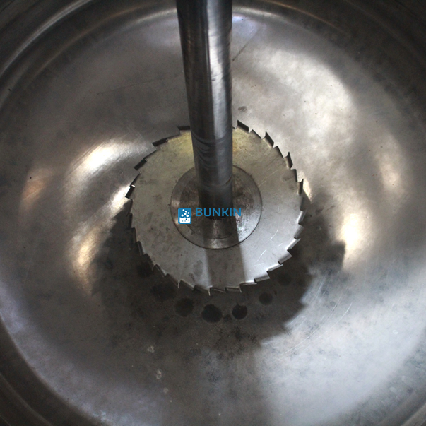 高速分散釜通過(guò)分散盤(pán)的高速運(yùn)轉(zhuǎn),使物料呈環(huán)狀流,產(chǎn)生強(qiáng)旋渦,呈螺旋狀下降到渦流底部。粒子間產(chǎn)生強(qiáng)烈的剪切撞擊與磨擦,達(dá)到迅速分散、溶解、均勻混合、簡(jiǎn)易乳化的功能。